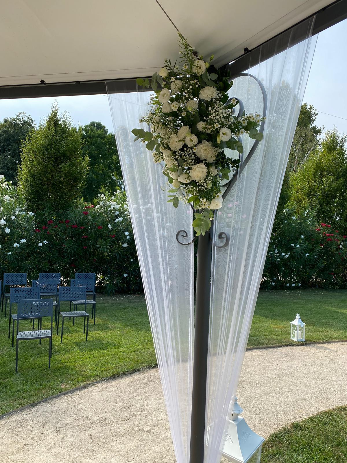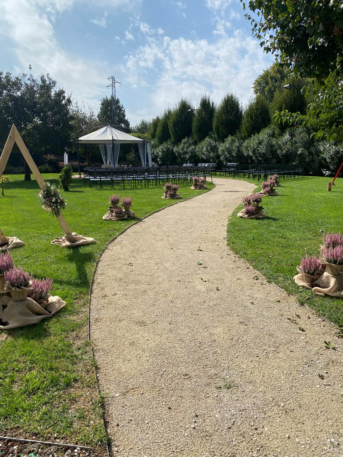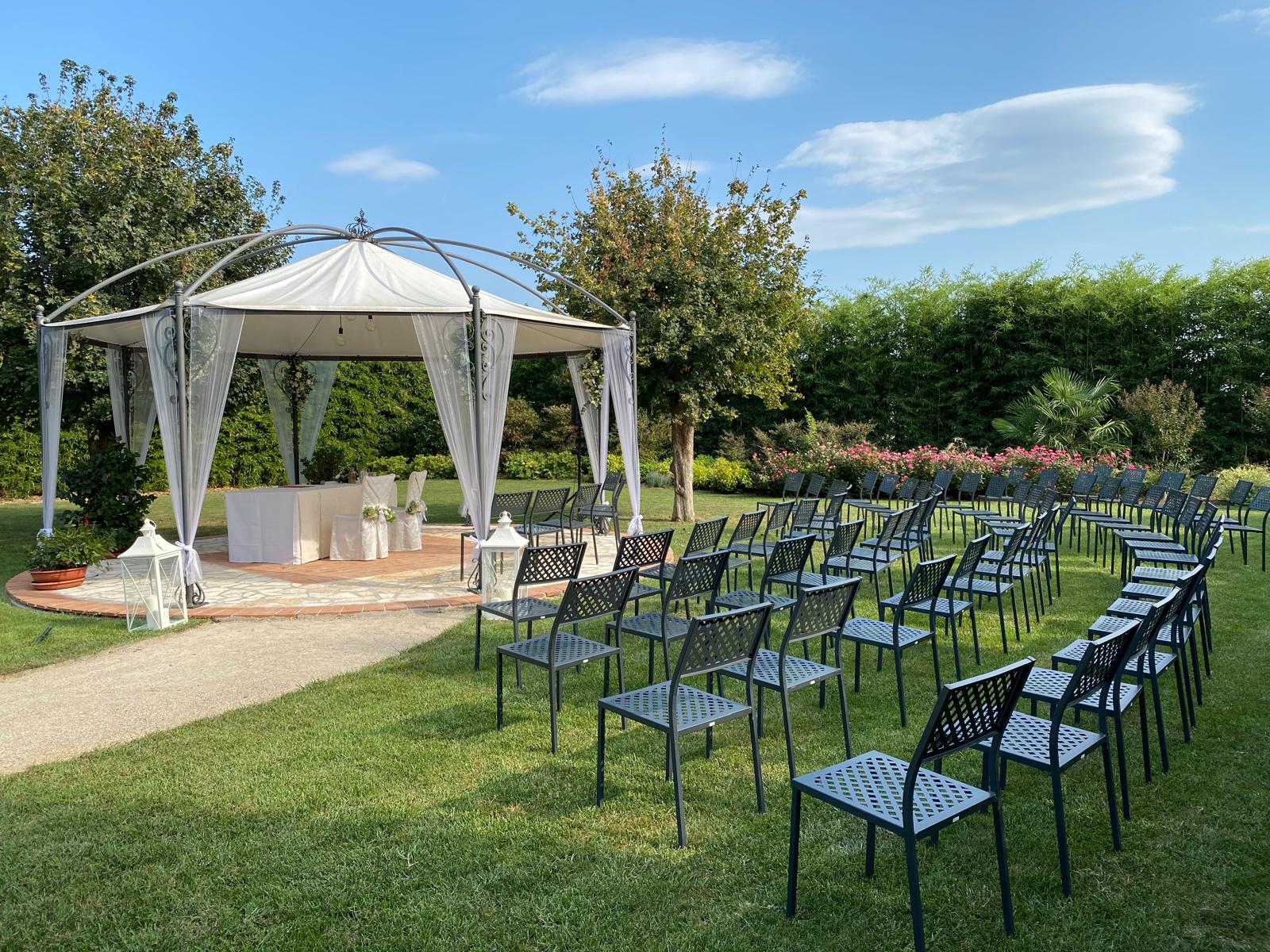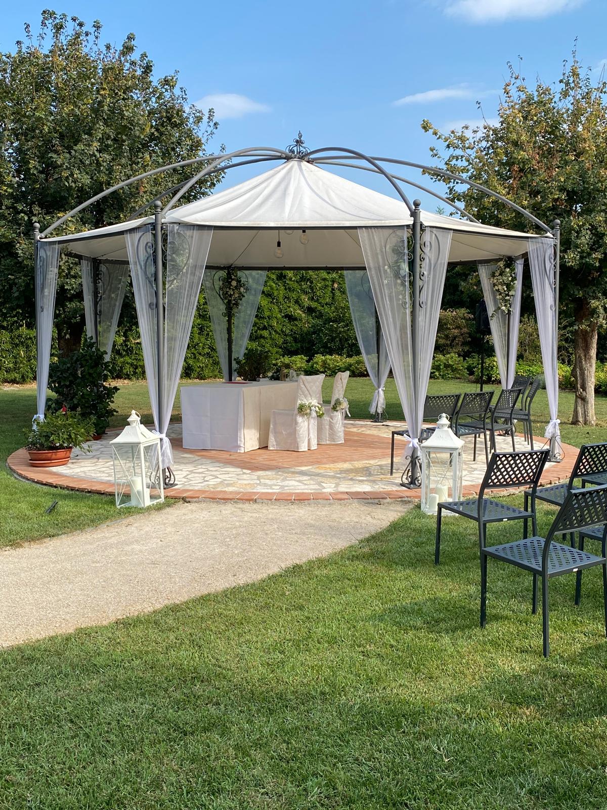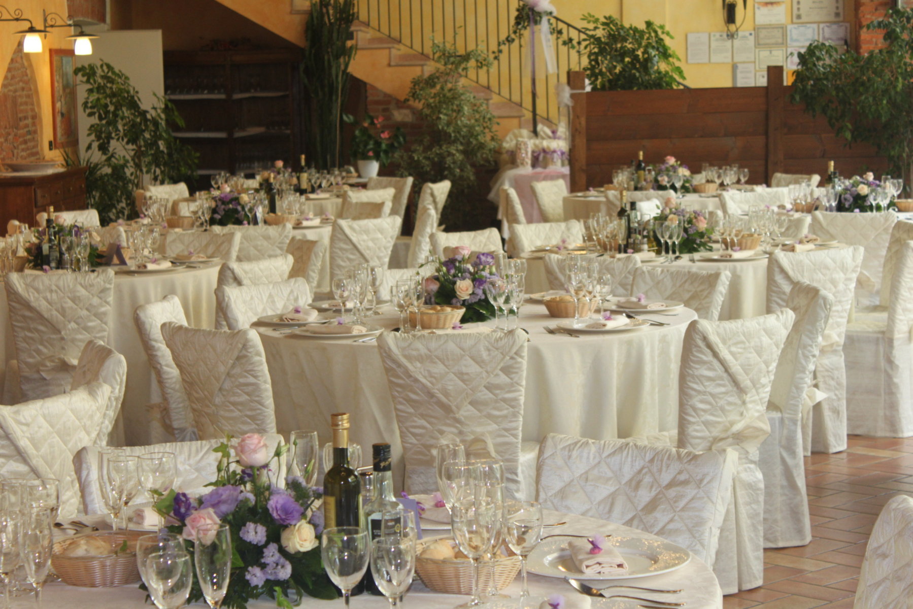 Il banchetto nuziale si svolge all’interno di un grande porticato ristrutturato mantenendo le forme e i materiali originari. Le luminose vetrate consentono agli ospiti di ammirare i colori del giardino e rendono l’ambiente affascinante e suggestivo.
